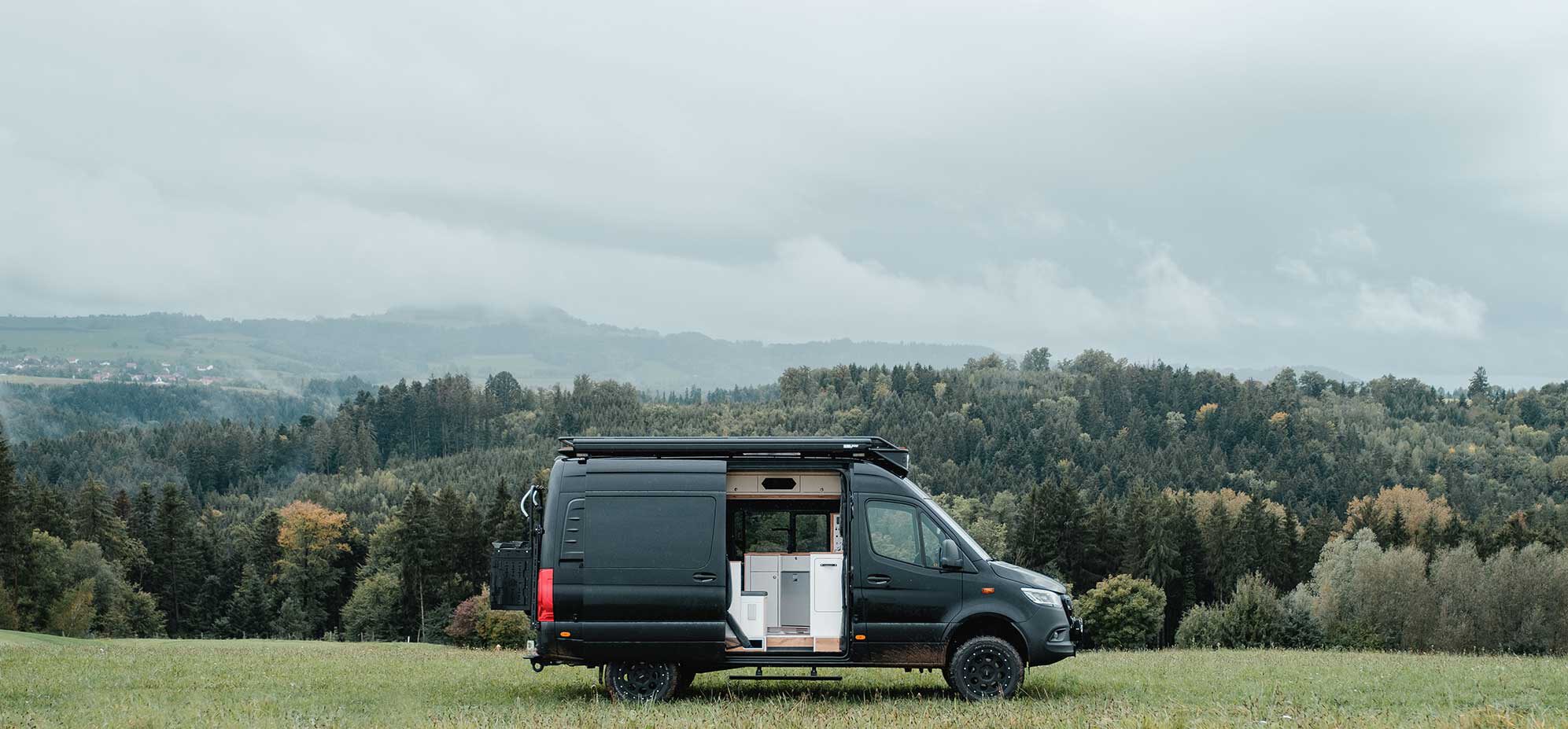 Unser dunkler Riese, aka SLY, ist für alle Abenteuer ausgerüstet: Mit der 300 Ah Lithiumbatterie und den zwei Zusatzscheinwerfern geht dem Campervan nie der Saft aus und auch auf dunkelsten Straßen gibt es stets freie Sicht auf das, was vor einem liegt. Das Sahnehäubchen auf dem Sprinter wird dann im nächsten Schritt umgesetzt, wenn Dachträger mitsamt Solaranlage angebaut werden. Dann steht dem autarken Urlaub nichts mehr im Wege!